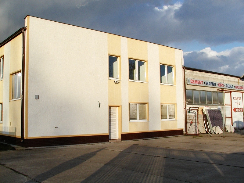 Wykonanie hali przemysłowej (od fundamentów po dach) z konstrukcji słupowo-szkieletowej z przeznaczeniem na hurtownię budowlaną . Realizacja pomieszczeń biurowych oraz infrastruktury towarzyszącej. Obiekt całkowicie zrealizowany przez Rambud s.c.