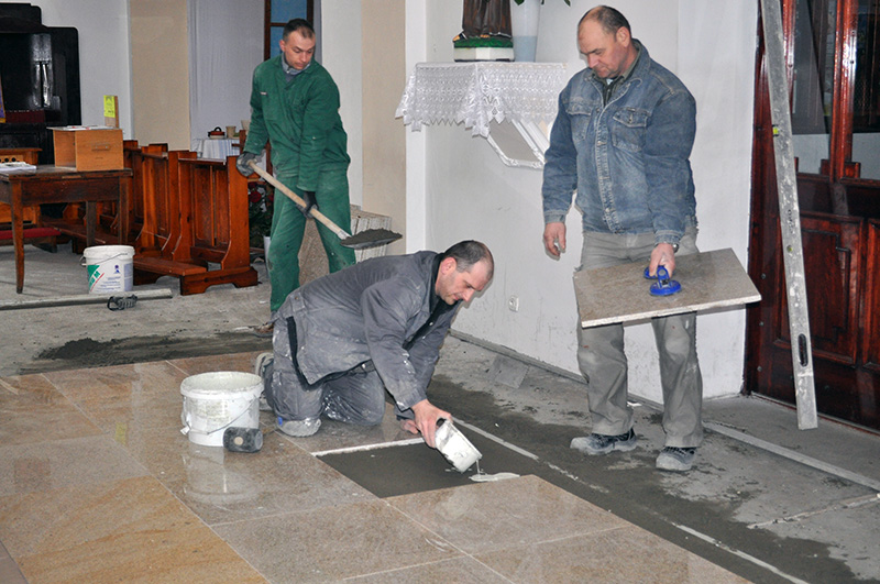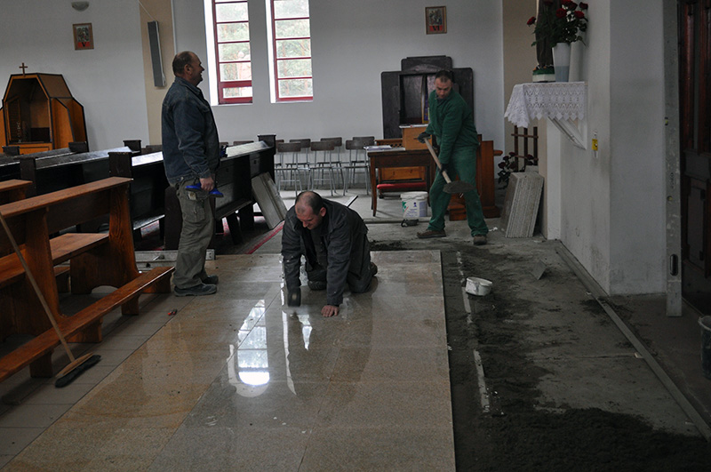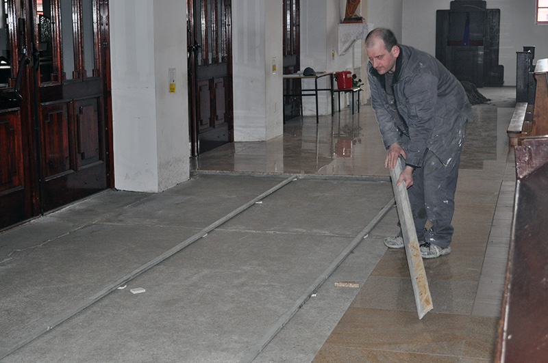 Wykonanie posadzki z płyt granitowych w kościele p.w. św. Mateusza w Bydgoszczy.